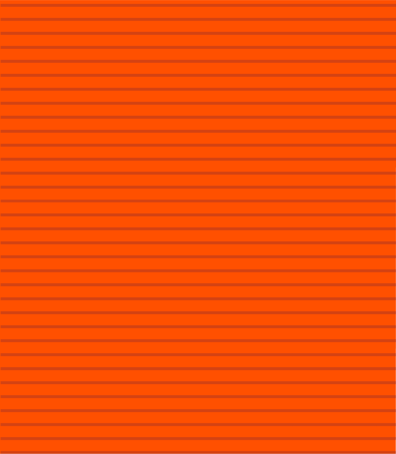 Two of the acceptable versions of the pattern are shown to the right. Over the primary orange, the stripes are the secondary dark orange. Over white, the stripes can be the brand’s purple or kraft-tone brown at an opacity that is best suited for the material and application that creates this visual effect shown here.